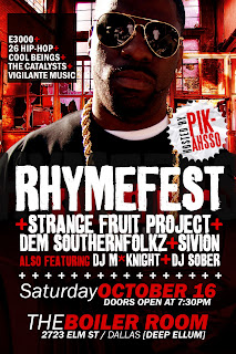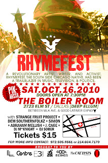 This past weekend on Saturday October 16th 2010 I PiKaHsSo allen Poe had the pleasure of hosting the Rhymefest show @ The Boiler Room it was dope with plenty of beautiful women in the house. But before the show Rhymefest & his manager Toya B stopped by the Legendary EZ Eddie D long running hiphop show down here in Dallas. It's called Knowledge Dropped Lessons Taught on KNON 89.3 FM PiKaHsSo The American Weirdo & Tahiti The King Of Whack along with Money Stax & Rapture was live on PiKaHsSoVision Ustream and caught all these hiphop antics on tape. Rhymefest freestyles, he shows us an example of a funny style emcees, he scores on Pikahsso tight Pink & Green shirt lol lol just alot of fun. So peep this interview it's long but i didnt wanna miss nothing so i just let the PiKaHsSoVision UStream just run. Eddie also interviews PiKaHsSo & Tahiti about our infamous Fat Albert N The Hood DVD/CD. Enjoy and if you missed the show slap yoself it was Dallas hiphop at it's best.