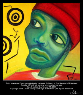 10"x10" Oil Paint on stretched Canvas. Inspired by the likeness of Pikahsso previously from the music group PPT, currently AwkQuarius. Featuring the song "Verb" by Pikahsso.